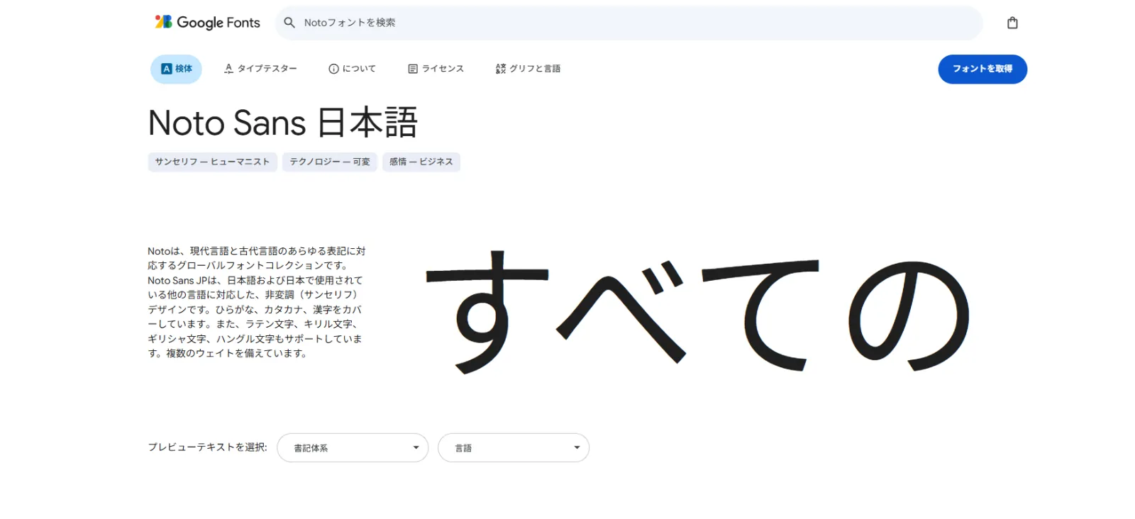 Googleが開発したNoto Sans JPは、あらゆる環境で文字化けしないよう設計された高品質フォント。