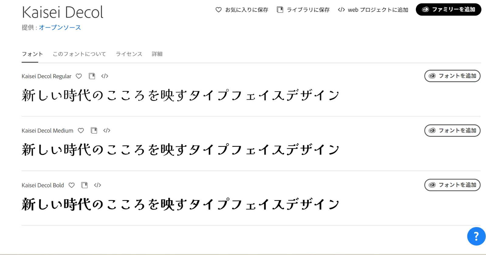 ダウンロードはこちら:https://fonts.adobe.com/fonts/kaisei-decol
