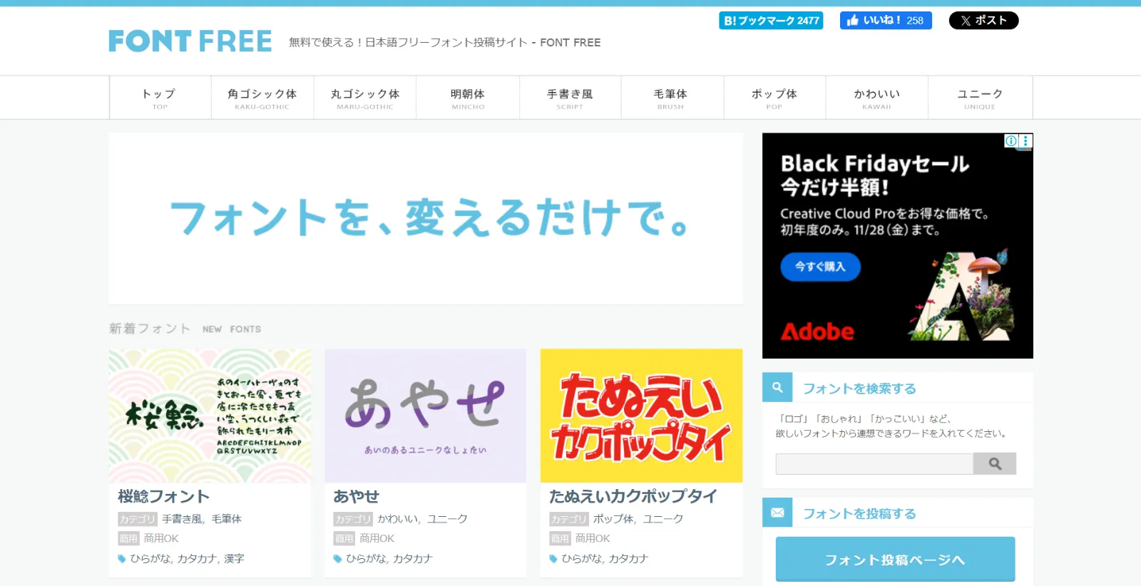 検索しやすい構成で、用途や印象に合わせたフォントを探しやすいのが魅力です。